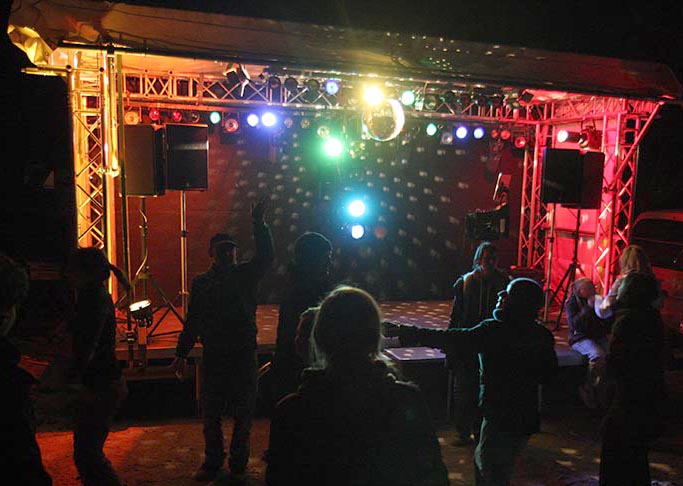 Die ersten Runden: Jetzt dominiert gut tanzbarer Discofox. Erfahrungsgemäß haben die reiferen Gäste keine Scheu, gleich zu Beginn die Tanzfläche zu füllen. Wenn jetzt ein kleiner Schwenk zu etwas aktuellerer Mucke einsetzt, werden die Jüngeren mit Aktivität vor den Boxen dafür sorgen, sodass erst einmal deren Musik bedient wird. So werden die Generationen "gegen einander" ausgespielt, bis alle gemeinsam tanzen. Wenn es trotzdem zwischendurch mal ruhiger auf dem Dancefloor wird, sorge ich mit speziellen musikalischen Höhepunkten für Abwechslung: Twist, Rock oder auch Latein-/Standardtänze entfachen neue Betriebsamkeit. Nun werden auch andere Genres bedient: Britpop, Funk'n'Soul, Reggae, Blues, Deutschpop u.v.m.