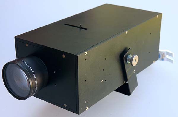 Deshalb eignen sich auch heute noch (wie auch schon in den 20ern) Verfolgerscheinwerfer mit max 10° Lichtaustrittswinkel, wie wir sie vom Theater und Livekonzerten kennen. Tatsächlich verwende ich ebenfalls eine solche "Kanone" für die großen Events. Für die typische Hochzeit ist mir aber auch der kleinste Verfolger unter den modernen Geräten noch immer etwas zu groß, deshalb baute ich mir einen sehr kleinen, aber kräftigen Spot selbst. Die Linsenoptik stammt aus einem Diaprojektor und die Elektronik (DMX/LED-Ansteuerung) entwickelte ich selbst. Zum Einsatz kommt eine moderne Highpower COB-LED mit 30W.