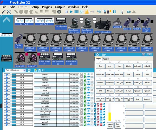 Vor allem, um Platz zu sparen, nutze ich anstelle der Konsole für meine Lichtsteuerung eine Software (Freestyler), die ebenfalls auf meinem Disco-PC-System läuft. Bedient wird das Ganze über ein Eigenbau-Midi-Tastenfeld sowie Shortcuts im Programm.